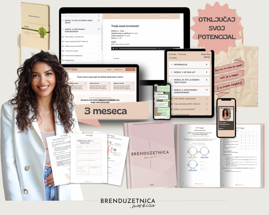 Ako želiš da otključaš svoj potencijal, postaviš svoje standarde i naučiš da upravljaš vremenom u skladu sa svojim vrednostima i ciljevima, Brenduzetnica program je za tebe.
