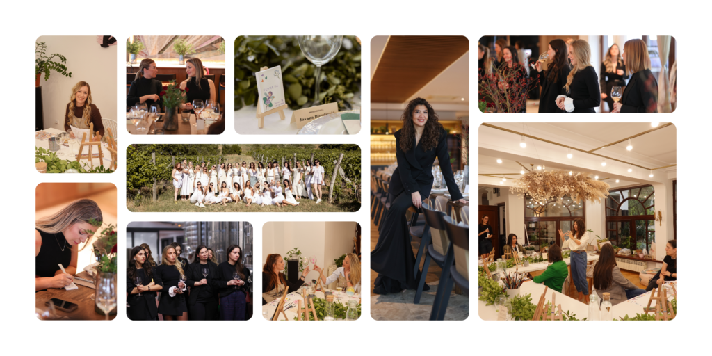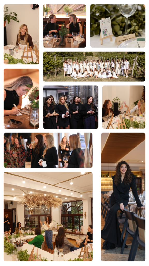 Na sredini programa organizujemo neformalno druženje u vinariji. U prijatnoj atmosferi degustiramo vrhunska vina i sabiramo utiske uz kreativnu radionicu. Ovo nije kraj, već prilika da se bolje upoznamo i otvorimo vrata novim mogućnostima. Minimalan broj grupe za događaj je 15 žena.