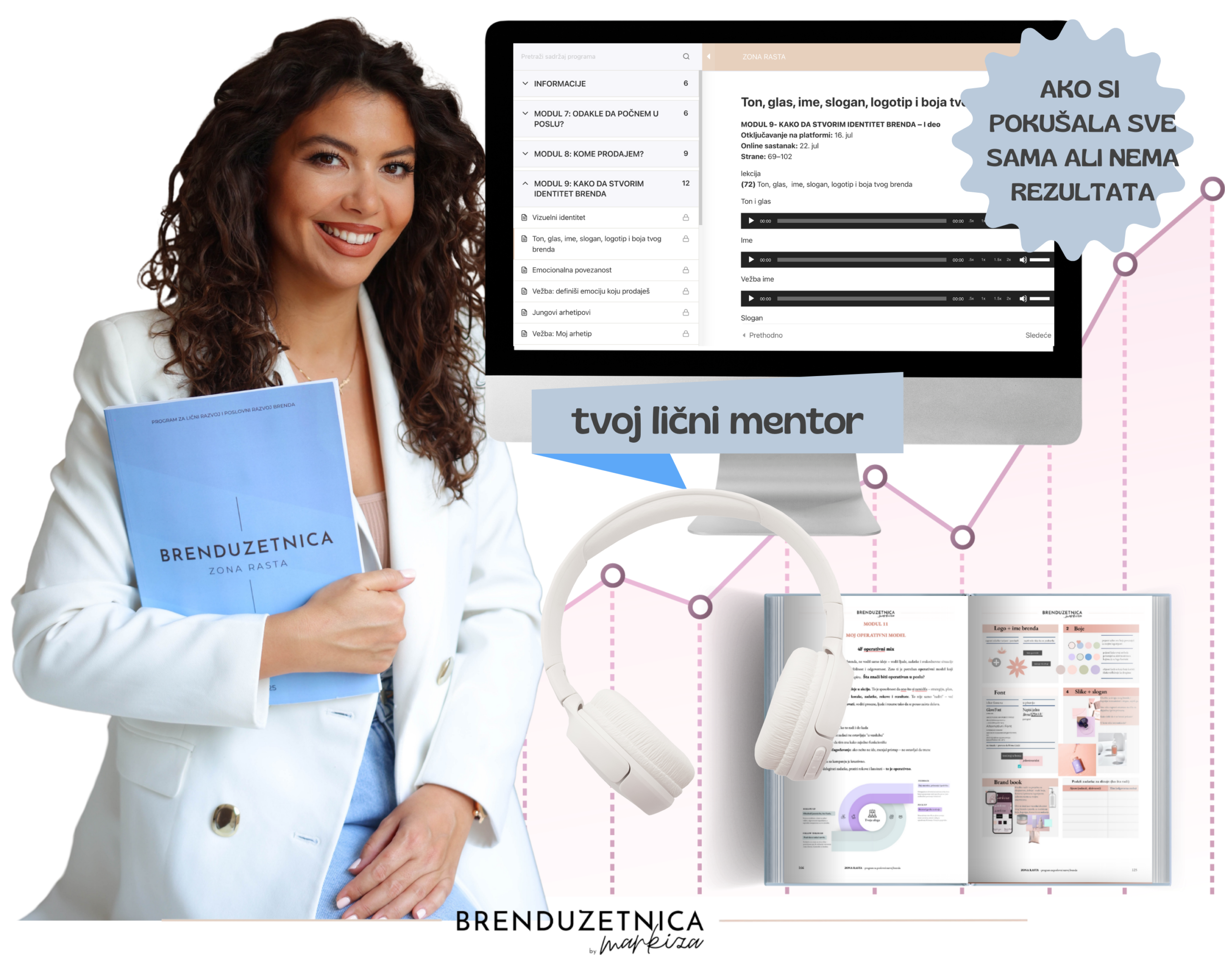 Imam sistem za tebe koji radi za stotine žena koje su prošle ovaj put. I sama prošla taj put poslednjih 10+ godina i više puta pravila brend od nule. Poslednji sam i prodala nakon 3 miliona evra prihoda po sistemu “ključ u ruke”.